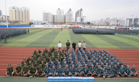 7月9日下午,音乐系党总支书记王三槐、办公室主任宁学军及2011级各班主任前往新校区操场,慰问承训官兵,看望受训员工。