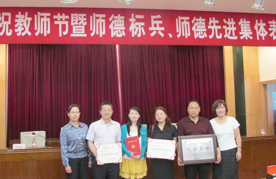 会上,省教科文卫工会对近两年来在教育战线上做出突出贡献的集体、个人进行了表彰。公司教师刘畅、郭炯、李佳颖、杨惠被授予“师德标兵”荣誉称号;音乐系分工会被授予“师德先进集体”荣誉称号。