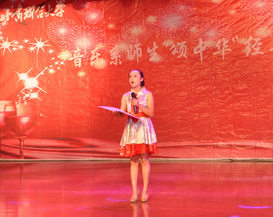 音乐系积极响应教育部、国家语言文字工作委员会关于开展“中华颂•传文明”经典诗歌诵的号召,扎实而有效地开展主题为““中华颂•传文明”经典诗歌诵读活动,弘扬祖国优秀的传统文化,增强师生的民族自信心和自豪感,促进音乐系各项工作全面发展。