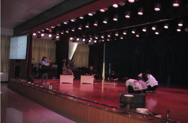 2012年5月14日下午2:40,音乐系2012年艺术实践系列活动之一 —音乐系副教授胡炬老师关于“奥尔夫教学法的原本性音乐教育体验与思考”学术讲座在思源楼萃文厅举行。音乐系主任王采教授、党总支书记王三槐、副主任张世成副教授及音乐系全体教师和与全校400多名员工一同聆听了讲座。