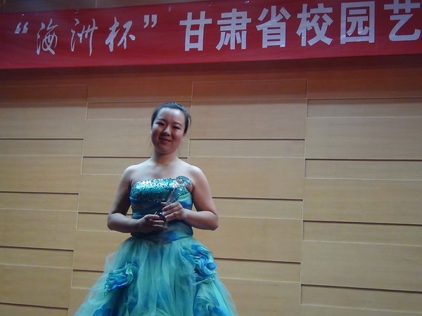2012年12月15日上午,由共青团甘肃省委、甘肃省青年联合会主办,兰州海州文学艺术交流有限公司承办的第八届“海州杯”甘肃省校园艺术大赛在西北民族大学举行,我系青年教师赵静参赛并荣获甘肃省高校教师组美声唱法一等奖。