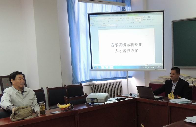 2013年3月28日下午2:40, 音乐系举办了“音乐表演专业本科培养方案”研讨会。音乐系主任王采、副主任张世成和音乐系部分教师参加了会议,责任教授、校督导委员会李欣教授应邀参加了研讨会。