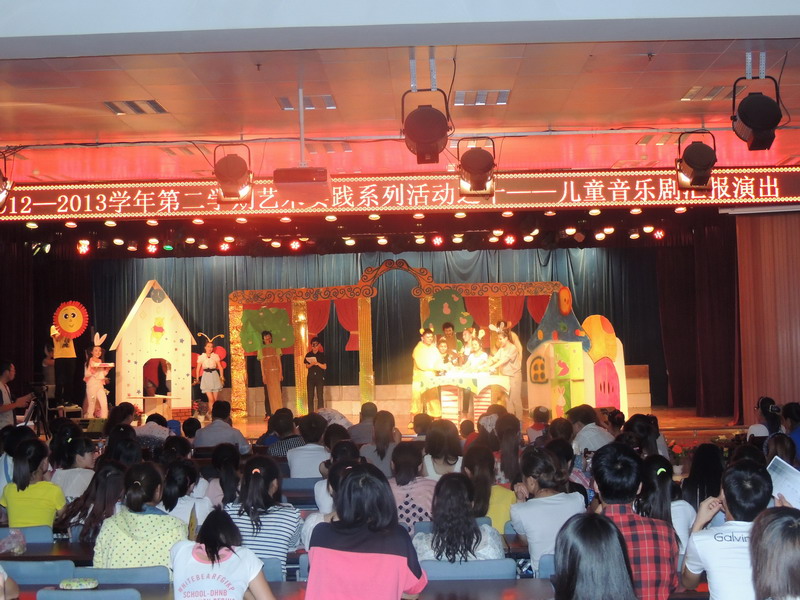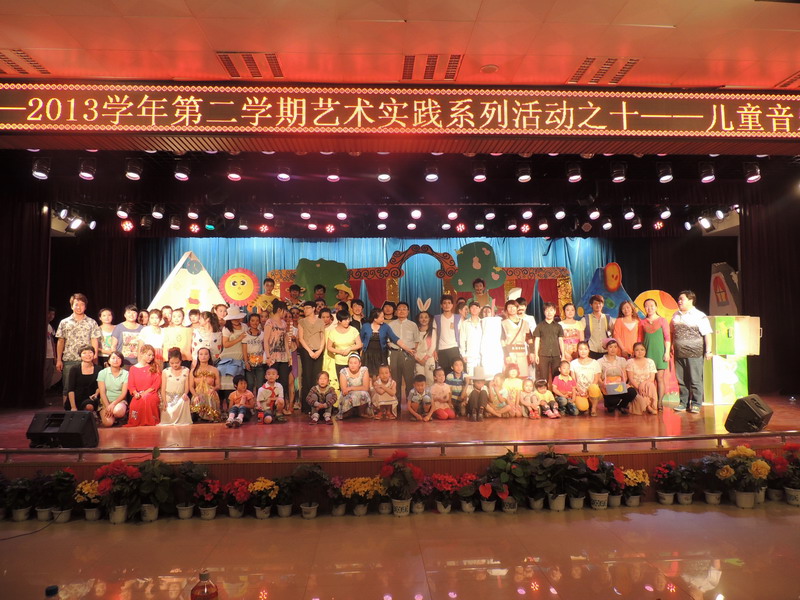 2013年6月5日晚七点,音乐系2012---2013学年第二学期艺术实践之十----------2011级音乐教育班“儿童音乐剧教学汇报演出”在思源楼萃文厅举行,书记王三槐、系主任王采教授、张世成副主任以及音乐系师生观看了演出。同学们精心改编了迪士尼动画《美女与野兽》、英国最受儿童欢迎的故事《小熊维尼》两部儿童音乐剧。