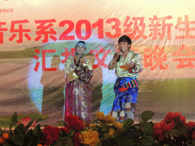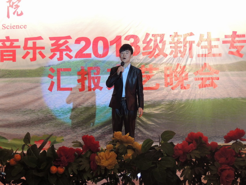 2013年10月17日晚上7:30,音乐系2013-2014学年第一学期艺术实践系列活动之二----音乐系2013级新生专业汇报文艺晚会在思源楼萃文厅举行,音乐系党总支书记王三槐、系主任王采、系副主任张世成和音乐系500余名师生观看了音乐会。