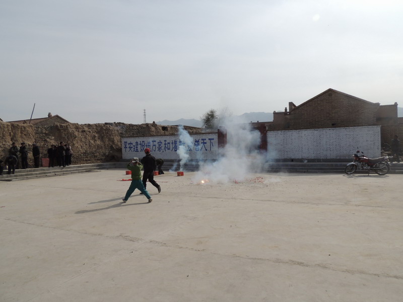 村民们鸣炮庆贺