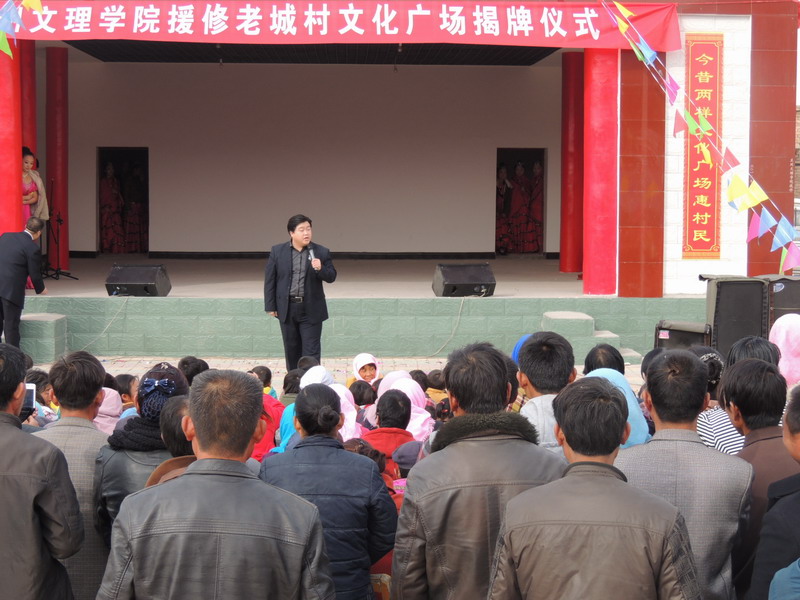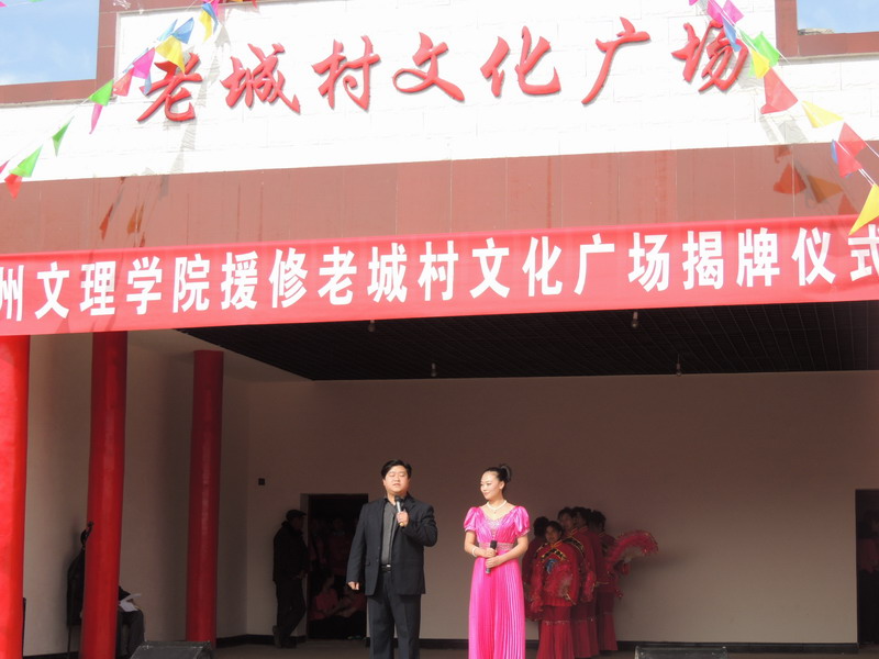 为贯彻落实省委省政府“联村联户,为民富民”政策,公司援修的老城村文化广场2013年11月7日竣工落成。“校村共建,文化下乡”,史董事长率领相关部门同志和音乐系46名师生,送文化下乡,与当地村民同台演出,给双联点的父老乡亲献上了一份文化大餐。