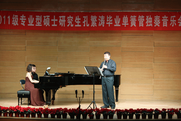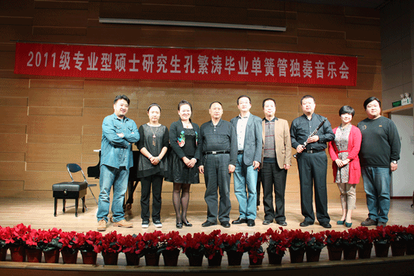 2014年5月13日下午16:30分,音乐系青年教师孔繁涛在西北民族大学音乐厅举办“艺术硕士毕业单簧管独奏音乐会”。音乐系书记王三槐、主任王采教授、张世成副主任及音乐系部分师生观看了演出。