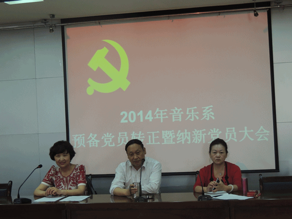 6月4日中午,音乐系召开2014年预备党员转正暨纳新党员大会。大会由教职工支部书记丁晓莉教授主持,音乐系党总支书记王三槐、系主任王采,教职工党员和员工党员参加会议。