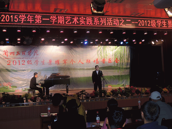 2014年10月16日(星期四)晚7:00,在思源楼萃文厅举办了2014—2015学年第一学期艺术实践系列活动之二——“2012级员工景耀军个人独唱音乐会”,体育平台官网经理王采、书记杨旭以及全系师生共500多人观看了演出。