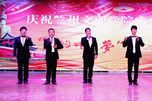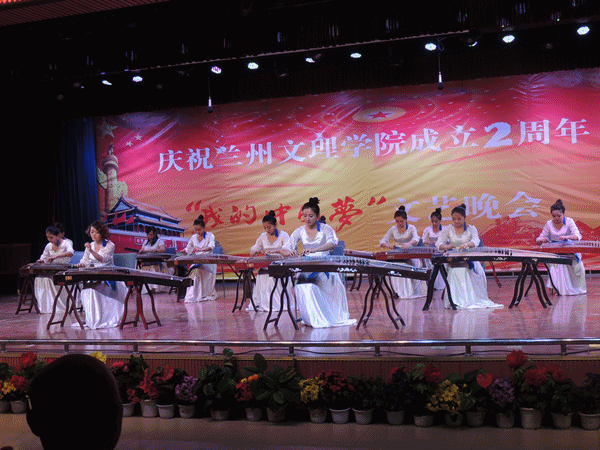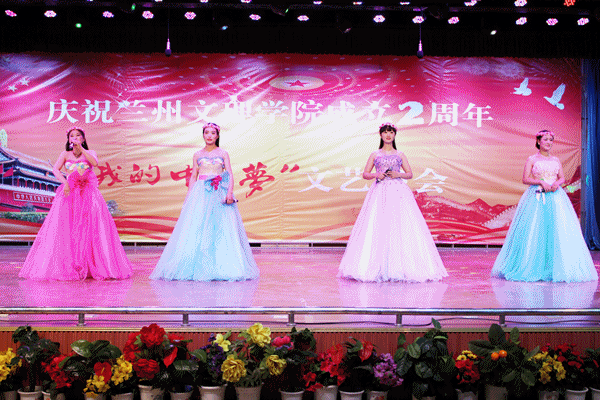 晚会分“民族情、校园风、中国梦”三个篇章,晚会以一首优美的合唱曲《中国梦、美丽的梦》开始,表现了文理学子努力奋进、立志向上的的情怀;表演唱《花儿与少年》、藏族组合《康定情歌》《巴拉格宗》寄托着同学们对美丽甘肃秀美的山河的赞美之情;舞蹈《美丽家园》、《红是红啊绿是绿》、《兵》、《茉莉花》等舞蹈,同学们展示了舞姿优美、扎实的基本功;通俗歌曲串烧、双排键演奏、古筝、二胡节目更是获得了观众阵阵掌声;还邀请到了公司特聘教授李莉表演了敦煌舞《反弹琵琶》,受到了观众的热烈掌声;歌曲《九儿》、《芦花》、《梅兰芳》、《共筑中国梦》等节目精彩精致,宏伟大气的节目一次次将晚会推向高潮,节目精彩纷呈,高潮迭起。老师、同学们用歌声、琴声、舞姿表达了文理人前进道路上的点点滴滴,把热情与活力洒向校园每个角落。