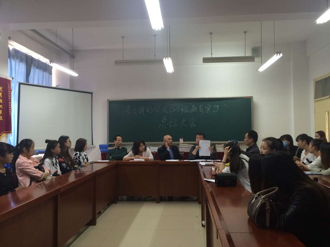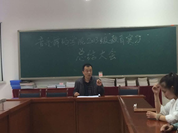 会议上2013级实习生代表杜磊、王彦龙、郭倩倩、余雅青分别做了发言并和大家一起分享了实习收获。实习不仅使他们收获了知识和技能,更多的是在接受教育的同时,让他们学会了如何做人做事。随后,由教师代表刘淑萃做了发言,刘老师就实习的过程和同学们一起做了总结,通过实习,明确自己与岗位的差距并弥补不足,给同学们提出了殷切的希望;理论作曲系主任孔繁涛给毕业生的毕业论文设计与答辩有关的事做了详细安排。最后,由公司党总支书记杨旭做教育实习总结讲话,杨书记指出实习是同学们正式踏入社会前的一次历练,在付出辛苦劳动的同时也收获了技能,锻炼了与人交往的能力,为以后更好的发展打下了基础。杨书记希望同学们毕业后能继续加强学习,并找准定位,积极服务国家和人民。此次活动的成功举办,不仅仅是一次实习总结大会,更是该院领导老师向即将步入社会的他们进行毕业前的一次良言忠告。
