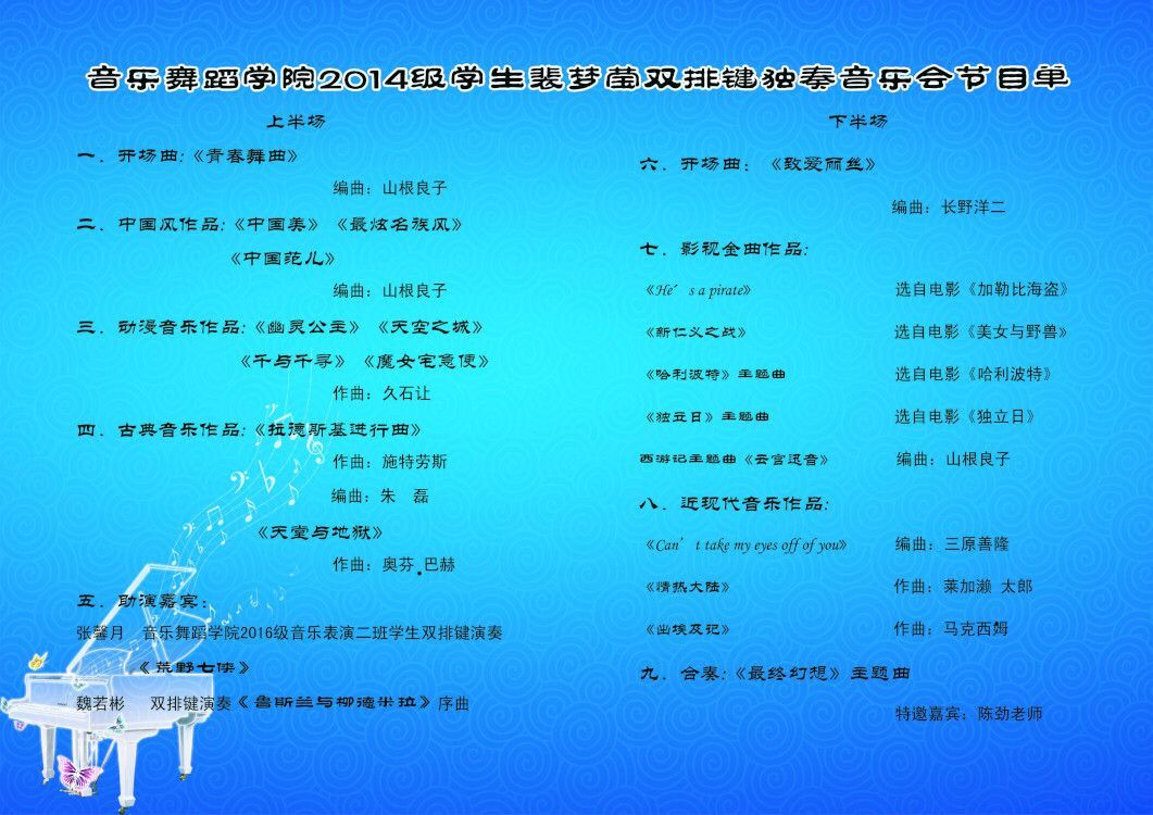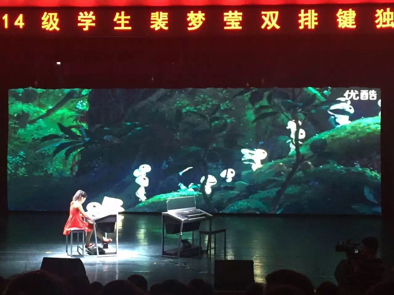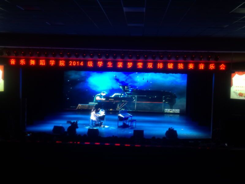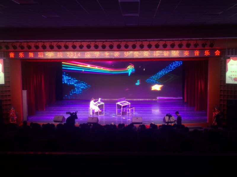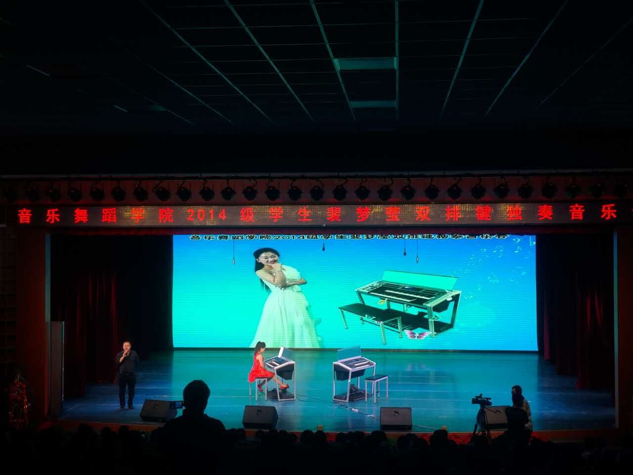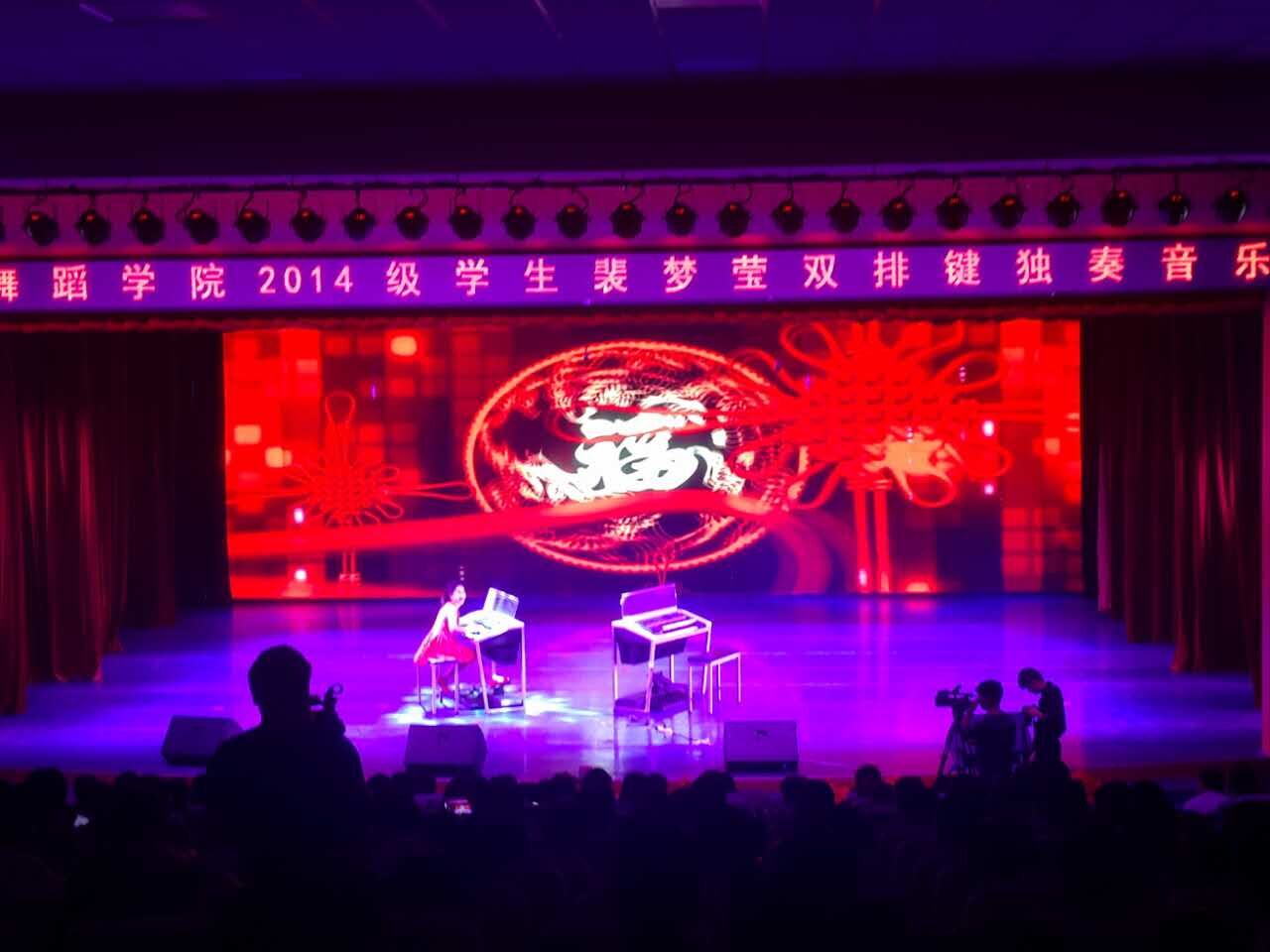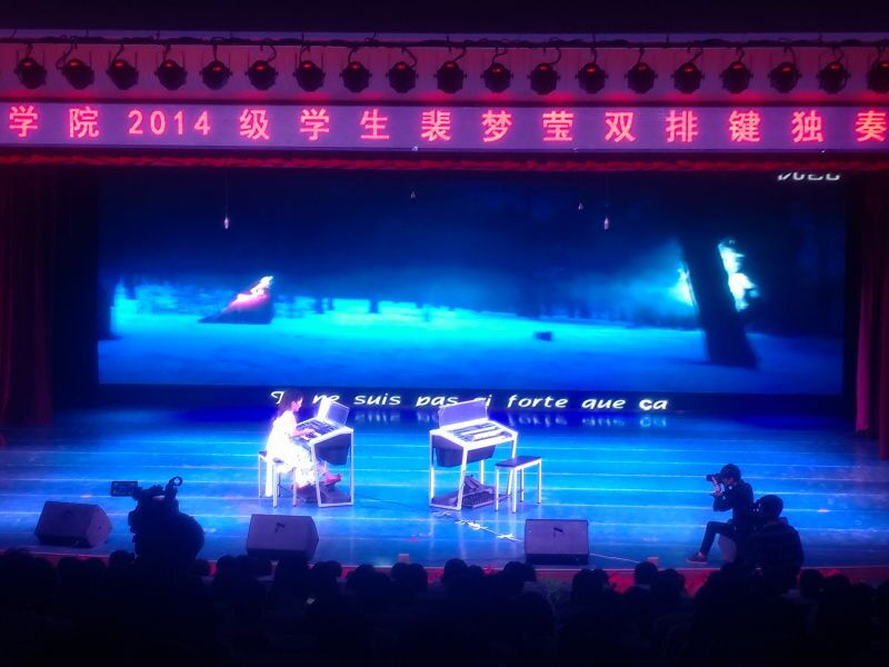 2016年9月26日晚,在体育平台官网实验剧场,体育平台官网举办了2014级员工裴梦莹双排键独奏音乐会,观众达五百余,气氛热闹非凡。主持人由指导教师陈劲担任,陈老师风趣幽默的讲解拉开了音乐会的帷幕。在全场观众的热切期盼下,她用一首热烈、奔放的《青春舞曲》拉开了本场演出的序幕。