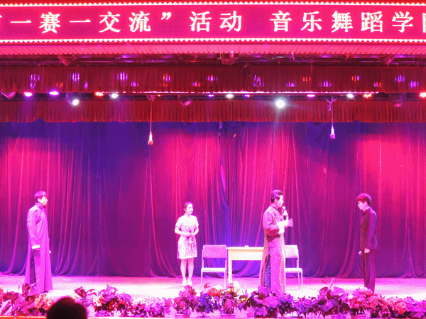 汇演在配乐诗朗诵《青春万岁》中拉开帷幕,学子们用他们高亢、真诚的语言生动的表达了他们对青春的礼赞。话剧《阮玲玉》和《雷雨》片段,情境曲折,表演生动,使大家意犹未尽;影视剧《康熙王朝》经典台词独白题材新颖,浓厚的历史气息给观众留下了深刻的印象;电影《简爱》片段配音以其独特的视听体验赢得了观众的热烈掌声;现代小品《广告公司—摇滚MV》新颖而幽默的题材引发了现场同学们的阵阵欢呼;讲述母爱的小品《讲不完的故事》更是将整个汇演推向了高潮。