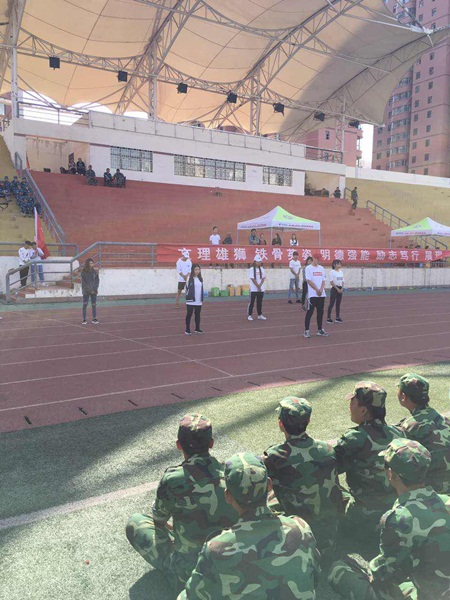 公司领导与承训教官进行了亲切的交谈,详细了解了参训员工的训练状况和进度,并对承训教官付出的辛勤劳动致以谢意。 公司员工会还组织了几个节目为受训的新同学们加油鼓劲。