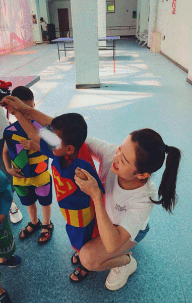 图为2015级舞蹈表演班同学走进儿童福利院传递爱心活动照