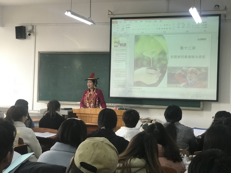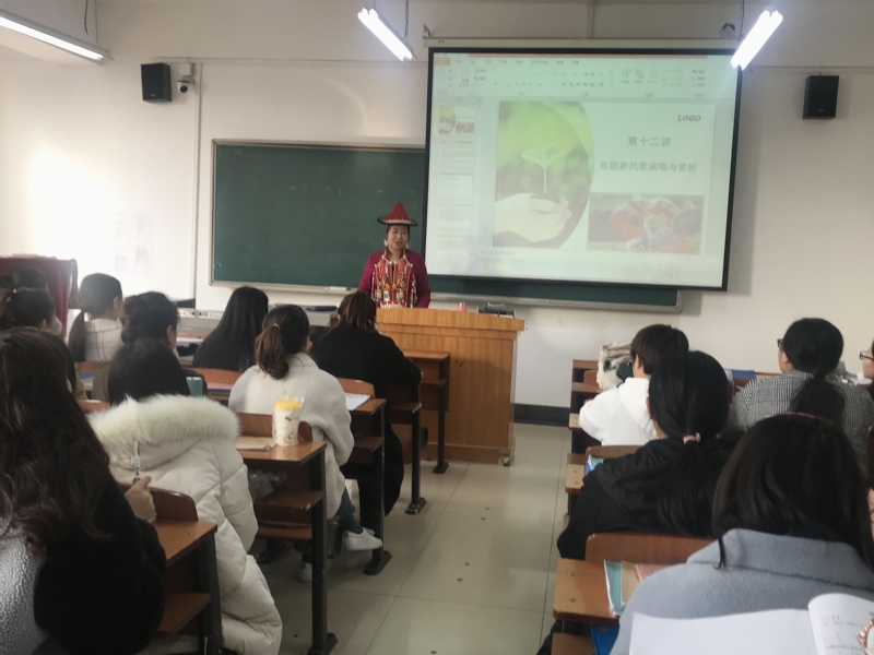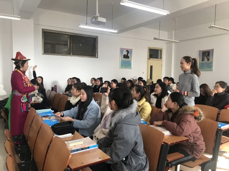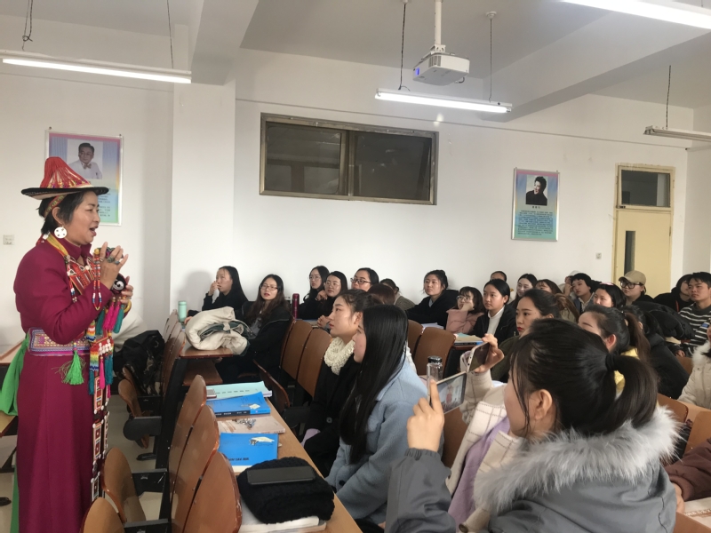 2019年12月6日(星期五)上午9点,公司邀请裕固族文化传承人瑙尔姬斯进行课堂教学互动活动,活动由体育平台官网经理王采教授主持,体育平台官网音乐表演专业2016级员工参加了此次活动。