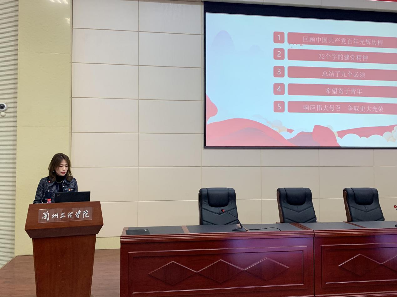 李冰老师紧紧围绕“回顾中国共产党光辉历程”、“诠释中国共产党的伟大建党精神”、“展望中华民族伟大复兴——九个必须”、“寄语广大青年”、“响应伟大号召 争取更大光荣”5个方面,对习近平总书记“七一”重要讲话精神进行了深入解读。报告主题鲜明、内涵丰富,帮助大家深化了对习近平总书记“七一”重要讲话精神的理解和把握。