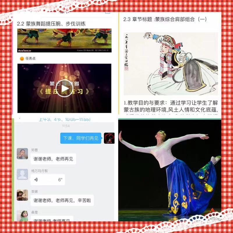 鉴于艺术类专业课程技能技巧的特殊性,为了能够在线上顺利完成教学工作,让员工正确理解老师动作示范,保障教学效果,尽可能克服线上教学隔空做示范表演的难题,避免员工正在演唱时、表演舞蹈时、器乐演奏时出现视频卡顿、网络延迟等情况,教师们利用有限的条件,录好音频、视频发给员工,再讲解问题。对于基础理论类课程,基本可以保障教学的正常进行。