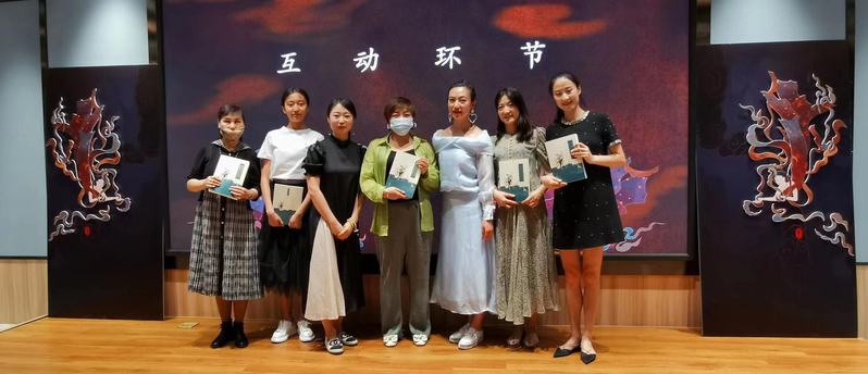 现场还设计了互动环节,主编李莉现场教学,五位敦煌舞爱好者认真模仿,李莉老师还向参与互动的读者赠送了本书。在签售环节后,参演人员和广大读者与作者合影留念。