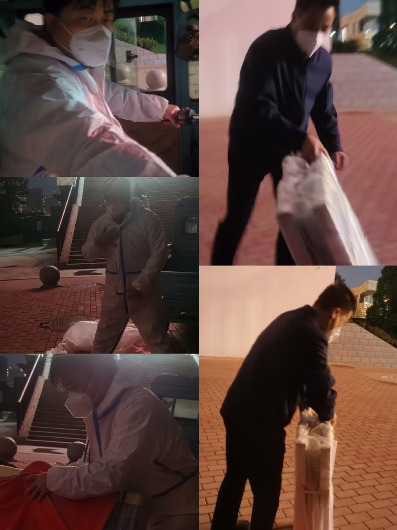 “把师生生活照顾好,情绪疏导好,早日重返校园,为恢复公司正常教学工作秩序做好保障”是校外隔离点点位长陈老师和邓老师的最大心愿。面对点位上的上百名员工,他们要负责日常食品、药品以及相关物资的供应和入住人员的健康监测。在没有电梯的楼上,他们身着防护服依靠肩扛手提,上下往返数次将师生一日三餐和生活必需品及时配送到位,一天下来衣服早已被汗水和消毒水湿透。当点位上的师生进入梦乡时,他们还在电脑前统计核对每位员工健康体征数据,分析研判核酸检测情况,规划第二天入点、出点人员安排。
