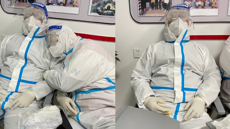 “开始采核酸了,准确粘贴试管码,核酸检测务必做到不漏一人。” 凌晨,伴随着一声通知,奋战在10号员工公寓楼的团队一天的工作开始了。员工的一日三餐、急需物品及用药等保障,全靠老师们肩扛手提,逐楼逐层逐宿舍准确配送到指定位置。因长时间佩戴口罩,老师们的脸被勒出了一道深深的印痕,有的甚至出现了发炎、过敏的情况,双手也因长期佩戴手套出现皮肤溃烂。工作伊始,时间紧任务重,有时休息仅两个小时左右,老师们累了困了,就躺在座椅上休息片刻。他们有的连续12小时不喝水不上厕所,只怕浪费了身上的防护服,只好憋着,扛着,熬着。大家都有着一个共同的信念,那就是尽自己所有的努力,将疫情的影响降到最低,守护同学们的健康与平安。