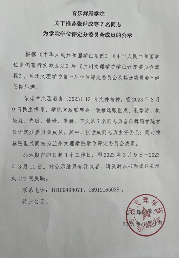体育平台官网关于推荐张世成等7名同志为公司学位评定分委员会成员的公示