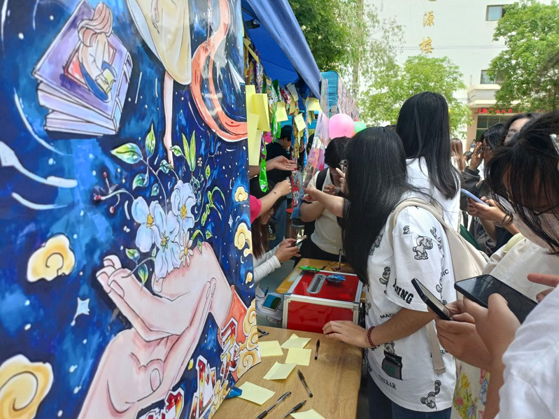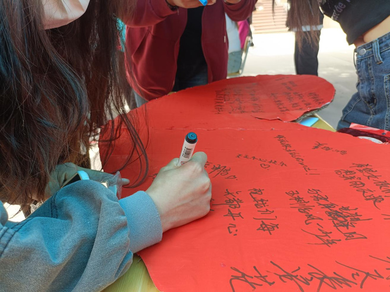 这个活动就是每个同学可以把自己想写的话写到卡纸上,然后放进纸箱子里面,可以写自己的远大理想和愿望也可以写自己对自己想说的话等等,每个参与者写完之后可以拿到一个糖果。此时此刻,把自己想说的话说出来,也是一种心灵的释放。