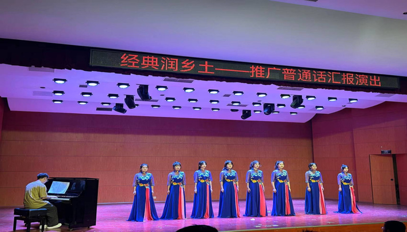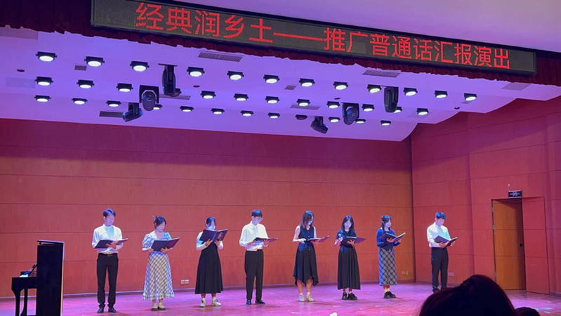 说好普通话,是对每位老员工的基本要求,也是每个中国人的责任。为促进“推普”工作的持续推进,体育平台官网声歌系特举办普通话推广课程汇报演出,由声歌系教师买岩萍,赵静担任指导老师,带领2021级音乐表演1班、2班完成汇报演出。汇报演出内容丰富,诙谐的小品、铿锵的朗诵、深情的合唱,同学们从各个方面体现了体育平台官网促进“推普”工作的持续推进。