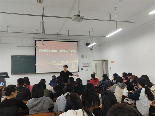 开班仪式结束后,马克思主义公司曾令琼教授以“百年精神丰碑凝聚奋进力量”为题进行了首场讲座。