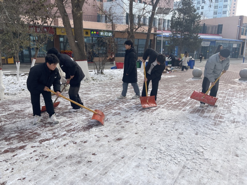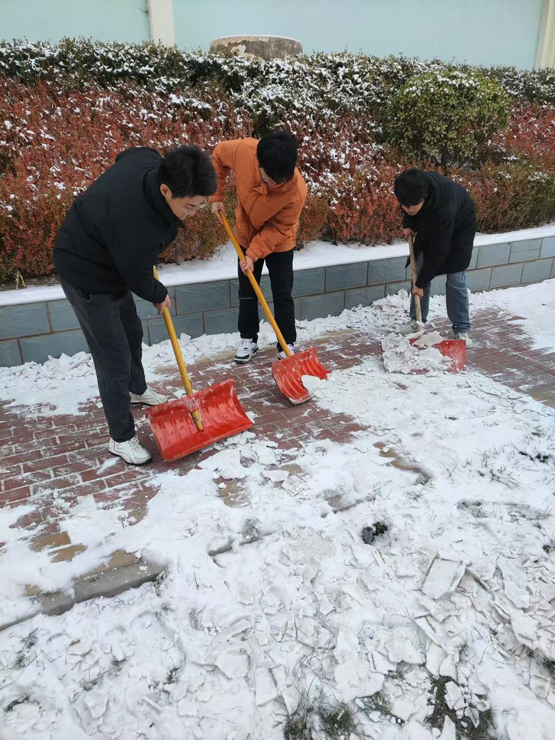 强降雪之后,公司组织员工会成员及入党积极分子合力清除音乐楼附近道路积雪,全力确保师生平安出行、道路畅通。