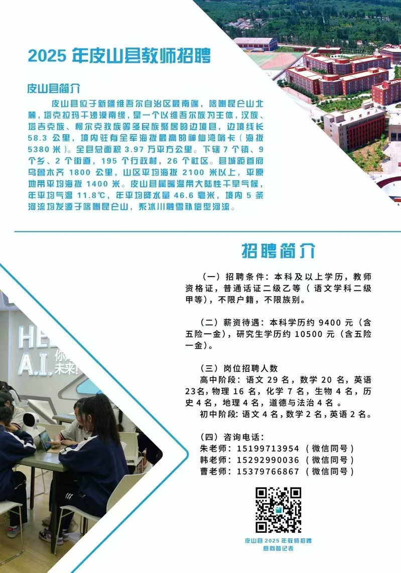 2025年新疆和田地区墨玉县及皮山县教师招聘岗位信息