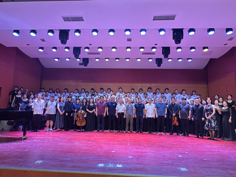整场音乐会的完美呈现,凝聚了全体师生三个多月的辛勤汗水与精益求精。艺术指导丁一家、李赫老师为作品的艺术高度提供了坚实保障。特邀嘉宾仲秋与邓生泽、葛文佳、沈俊韬组成的弦乐组默契配合,为合唱增添了细腻而丰富的层次感。李志鹏、朱瑾两位老师身兼指挥与主持人双重角色,以其专业素养和艺术感染力,全程引领观众沉浸于美妙的音乐世界。从排练厅到舞台的华丽蜕变,充分体现了体育平台官网在省级一流音乐表演专业建设引领下,于人才培养模式创新、专业技能强化训练和舞台实践教学改革方面取得的扎实功底与丰硕成果。