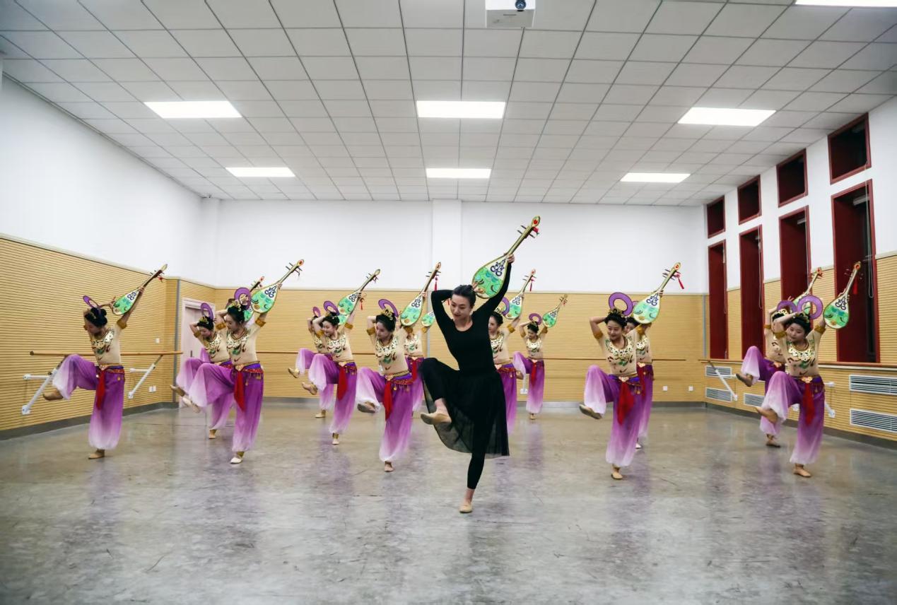 在严格落实《舞蹈表演专业人才培养方案》和课程体系的基础上,聚焦敦煌舞课堂训练成果,以莫高窟历代壁画造像为蓝本,总结提炼了“端庄静默”“失重意象”“凝思悟法”“伎乐凌空”“欢舞悟法”“慈悲喜舍”“伎乐凌空”“飞舞翩跹”“袖舞罗裳”等八个经典基训组合,精准还原敦煌舞“形、神、气、韵”的美学内核,展现了从石窟造像到舞台肢体的严谨转化,体系化再现了从北凉到初唐敦煌壁画活态复原,每一个动作都通过对敦煌艺术的细致研学,彰显了敦煌舞教学体现的“形随画走、神由心生”的基本遵循和学术精神,并不断创新着敦煌文人才培养体系基本训练的教学内容。敦煌舞人才培养体系与舞台剧目开发成为公司乃至公司最大的特色亮点。社会各界高度关注,积极评价。